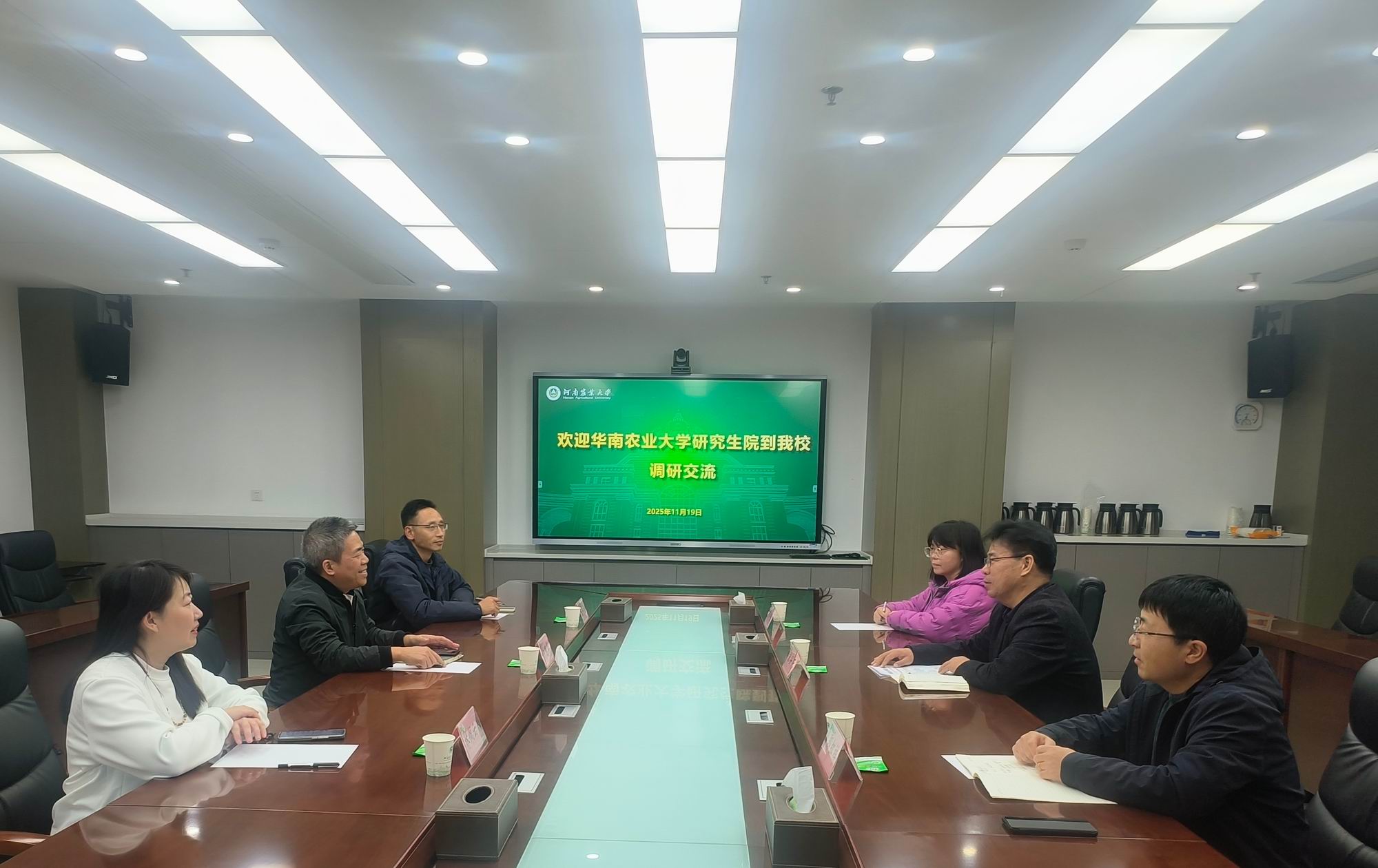2025年11月19日,华南农业大学研究生院院长钟国华一行来校调研交流,我校研究生院院长宋安东、副院长郭红祥等参加座谈。