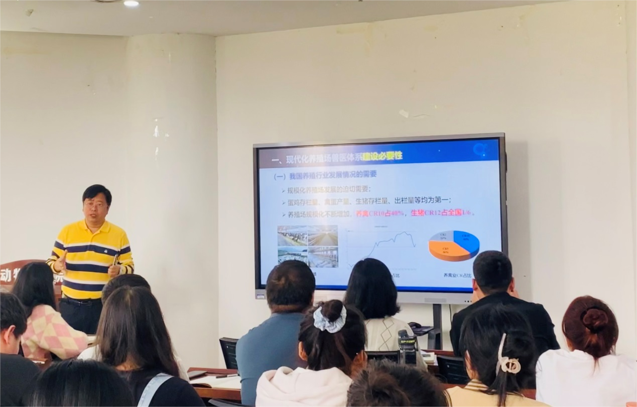 魏战勇首先给同学们列举了关于“防治疾病、分子诊断实验室、非洲猪瘟、养殖场兽医体系”相关故事,从而引出了本次报告的主题——关于规模化养殖场兽医体系建设的思考。其次他主要从现代化养殖场兽医体系建设必要性、建设内容、建设过程三个方面进行讲述,使同学们更加了解养殖场兽医体系相关知识,拓宽了同学们科研创新视野。本次讲座中既有理论高度又有他多年科研之路的丰厚经验,在座的同学们笔记满满、收获满满,并对其相关困惑与魏老师做了进一步交流,现场讨论热烈,学术氛围浓厚,他严谨求实的科研态度,积极探索的求知精神使参会师生受益匪浅。(文/王静雯)